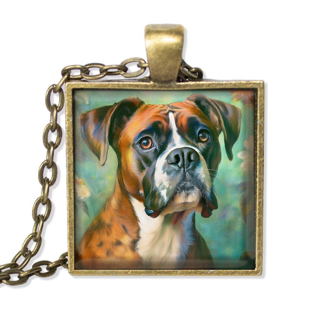 Square Glass Pendant Jewelry or Key Ring