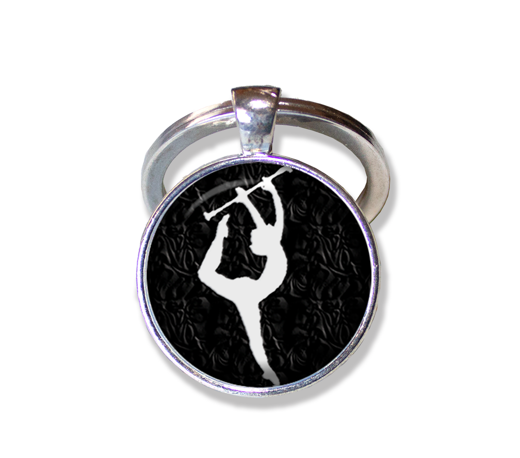This stunning glass pendant necklace features a white silhouette baton twirler on a black background, making it a unique back-to-school gift to celebrate the sport of baton twirling. Perfect as jewelry or key rings, these charming and affordable pieces are ideal for any occasion, showcasing a vibrant printed image under a protective dome glass that creates a captivating 3D effect. Crafted with care for durability and quality, each item comes beautifully packaged in an elegant organza gift bag, making it a thoughtful and distinctive present.